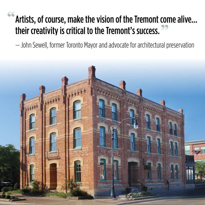 Visiting Tremont Studios in Collingwood, Ontario, is an authentic and energizing experience. Located in the Creative Simcoe Street neighbourhood, on the second floor of The Tremont, there are 10 working artists in individual studios, creating a diverse and stunning variety of art. The hallways of the building serve as a gallery with new shows every second month. The studios are open to the public to meet the artists.
